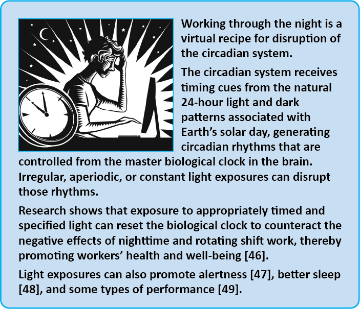 [135] Santhi N, Aeschbach D, Horowitz TS, Czeisler CA. The impact of sleep timing and bright light exposure on attentional impairment during night work. J Biol Rhythms. 2008;23(4):341-52. doi: 10.1177/0748730408319863