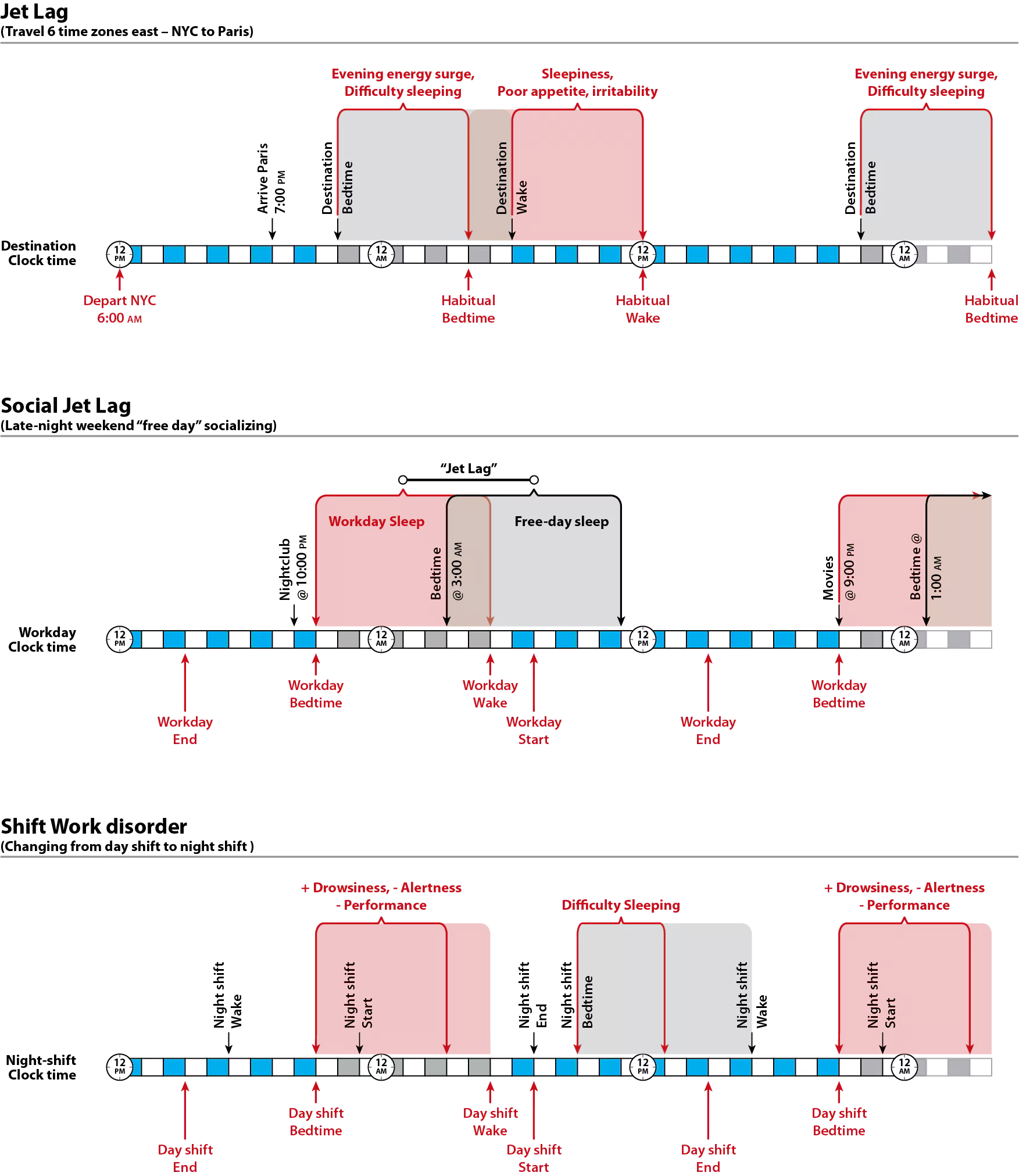 [123] Sack RL, Auckley D, Auger RR, Carskadon MA, Wright KP, Jr., Vitiello MV, et al. Circadian rhythm sleep disorders: Part I, basic principles, shift work and jet lag disorders. An American Academy of Sleep Medicine review. Sleep. 2007;30(11):1460-83. doi: 10.1093/sleep/30.11.1460